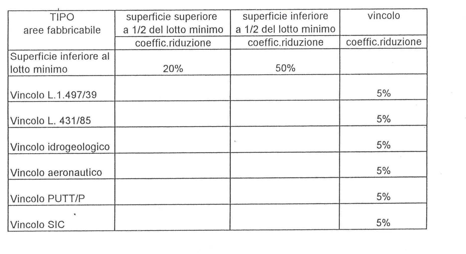 Coefficienti riduzione aree edificabili